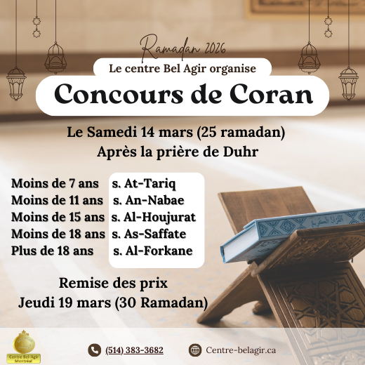 École coranique Al-IhsaneRamadan 2026 Concours de Coran février 19, 2026 admin Concours annuel du mois de Ramadan.